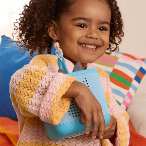But that’s not all ?C? the new Sunrise Alarm and Sleep Timer with Light help families build healthy sleep habits and make bedtime better. all easily controlled through the tonies? app. And with no screens or ads. parents can rest easy knowing their kids can play safely and independently?? in a whole new way.