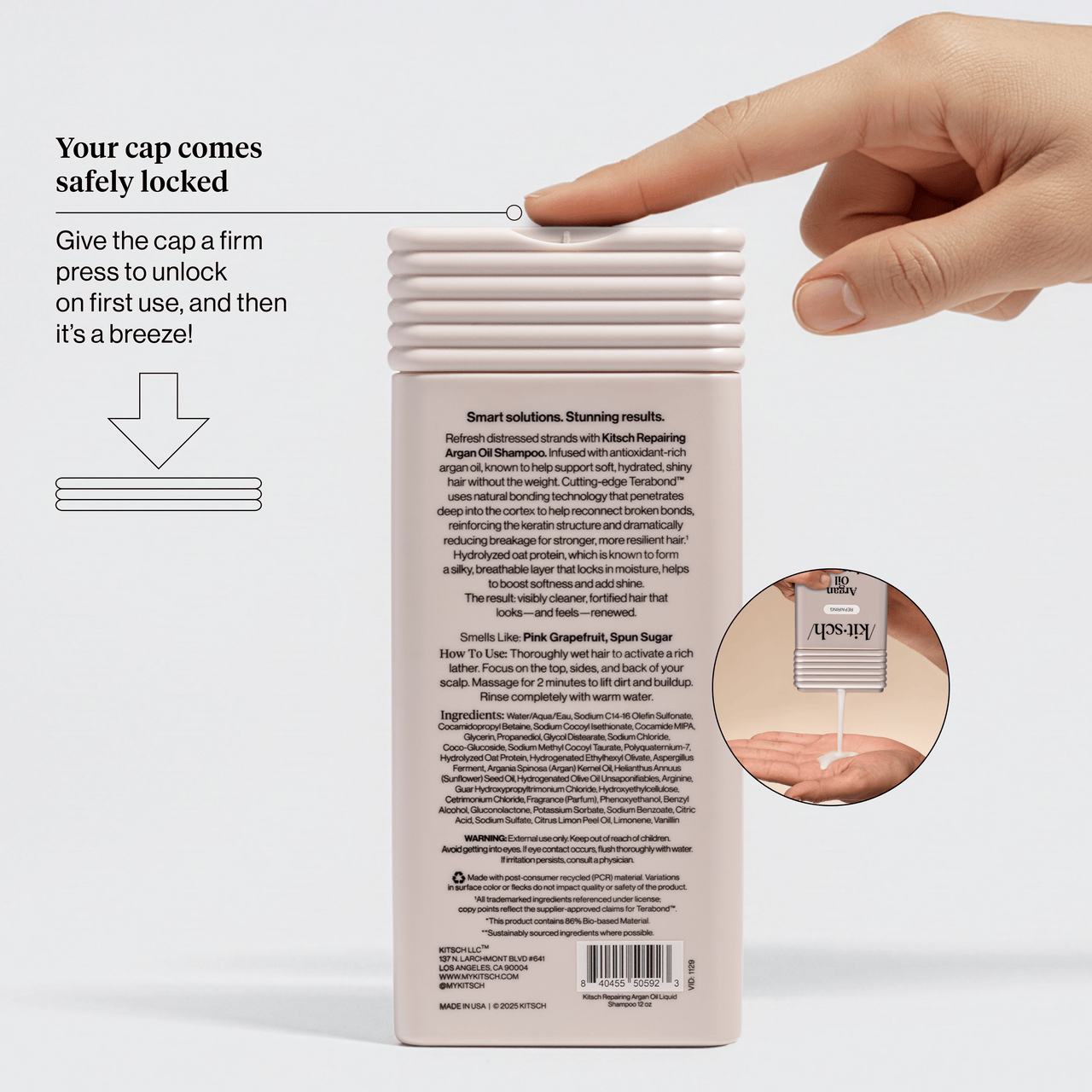 Pro Tip: If you love this formula. try our travel friendly. TSA-approved Kitsch Repairing Argan Oil Shampoo Bar – perfect for travel & gym bags!