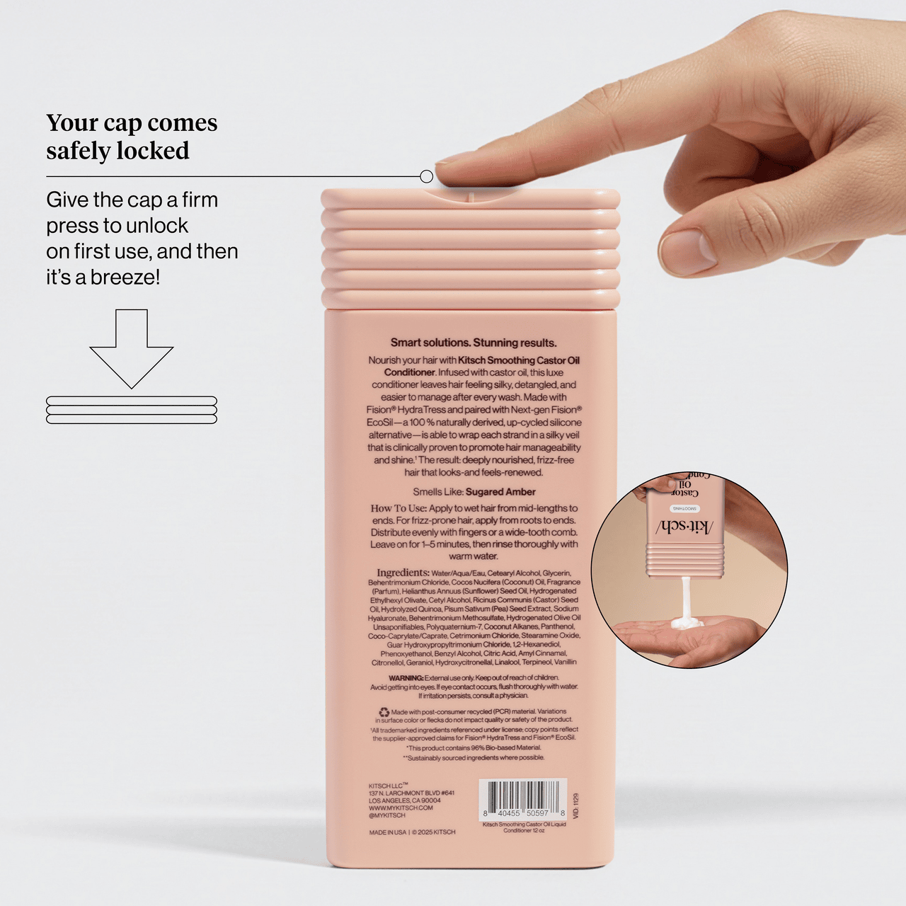 Pro Tip: If you love this formula. try our travel friendly. TSA-approved Kitsch Smoothing Castor Oil Conditioner Bar – perfect for travel & gym bags!